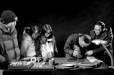 臺州職業技術學院藝術學院浙江省工藝美術大師金樹立向弟子介紹玻璃雕刻和琉璃工藝作品的制作原理。學校供圖