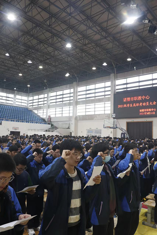 隨后,由21幼師班樓舒涵同學(xué)領(lǐng)誓,全體考生起立,右手握拳,以青春的名義,莊嚴(yán)宣誓。激情的誓言回蕩在每一個學(xué)生的耳畔,激發(fā)著他們對高職考的那份執(zhí)著的態(tài)度。