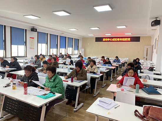 作為“老年唱歌班”的開班第一課,60余名歌唱愛好者按捺不住激動的心情,早早地就齊聚學校多媒體教室準備上課。課堂上,伴隨著悠揚的樂曲,大家跟著熟悉的張潤懋老師的節奏,時而低頭看詞,時而抬頭用心歌唱,老人們在收獲知識的同時獲得了更多的自信和快樂。