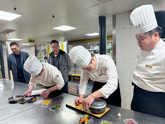 3月中旬,對19級實習生進行第一輪技能考核,招就處處長金建軍、理工部帥飛飛、專業教師王罕云、實習班主任陳墨組成考核團。實習生分布在浙北大酒店、國際大酒店、小西街湖州宴。