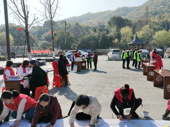 最令人期待的當屬“感恩有你”百米畫卷繪制環節。在活動現場,一幅百米長的畫卷緩緩展開,村民和志愿者們紛紛拿起畫筆,在畫卷上繪制著各種祝福語和圖案。他們用自己的雙手,將對當前生活的感激之情化作五彩斑斕的畫卷,表達對志愿者、對鄣吳鎮無私奉獻的美好祝愿。