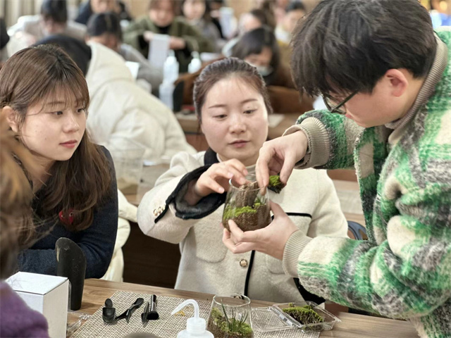“苔蘚微景觀制作簡單,成本低廉,應用廣泛,后期不需要特殊養護管理也可以長時間成活。”章老師說。學員們紛紛表示這樣的培訓一舉多得,既掌握了技術又提高了生活品位。(周亞)