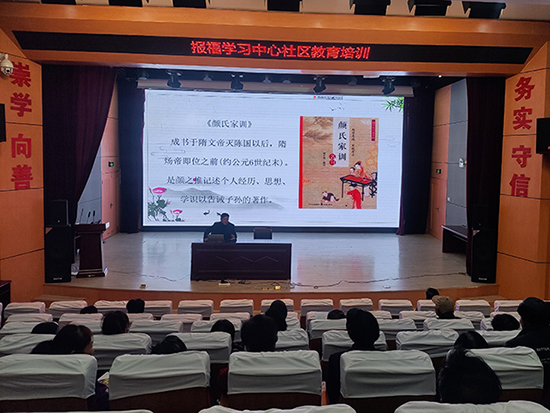 家風(fēng)家訓(xùn)是支撐中華民族生生不息、薪火相傳的重要精神力量。3月15日上午,安吉社區(qū)教育學(xué)院報(bào)福學(xué)習(xí)中心《家風(fēng)與家訓(xùn)》課程開講,邀請了報(bào)福村老年協(xié)會(huì)秘書長陳育成為學(xué)員作導(dǎo)讀培訓(xùn),報(bào)福村老年教學(xué)班52名學(xué)員參加培訓(xùn)。
