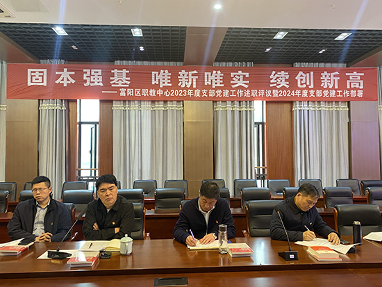 為切實加強基層組織建設,專題研究部署黨建工作,進一步落實上級黨建工作標準化要求,3月15日,富陽區職業教育中心黨委召開2023年度支部黨建工作述職評議暨2024年度黨建工作部署會議。會議由黨委副書記章文泉主持,學校黨委班子,各支部書記、委員,校黨政辦主任等24人參加了會議。