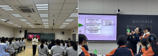 活動伊始,藝校周婷婷老師開設“接納和完善自我”思政公開課。周老師結合學生專業成長發展,采用活動型課程形式,圍繞“閱己”“悅己”“越己”開展教學活動,課堂氣氛活躍,落實了學科核心素養目標。藝校沈晨怡老師給大家展示了一堂獨具特色的班會課“服裝中的黨史記憶”,將黨史與服裝專業特色相結合。課堂精彩紛呈,激發了學生的學習興趣。