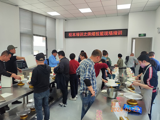 此次研修主題為進一步發揮“共同富裕”縣域樣本成校職能暨DIY烘焙培訓。培訓第一階段,全縣所有成校教師在孝豐成校報告廳集中,孝豐成校校長董正新主持并介紹孝文化以及本次活動安排。隨后,在董校長的帶領下,教師們走訪了孝豐鎮南門老街,探訪了千年古鎮文化。第二階段為DIY烘焙培訓,教師們在安吉縣99Cake甜品工作室楊晹老師的指導下,打發奶油、固定形狀、均勻抹面、水果裝飾、裱花等每個環節認真專注,興致盎然,發揮創意,歡聲笑語伴隨著奶油香甜的氣息,大家互相交流著各自的制作感悟,體驗著DIY的制作樂趣。在輕松愉快的氛圍中,教師們不僅釋放了工作壓力,更增進了彼此間的交流。經過一番動手制作,一個個精美的蛋糕新鮮出爐,現場氛圍熱烈。