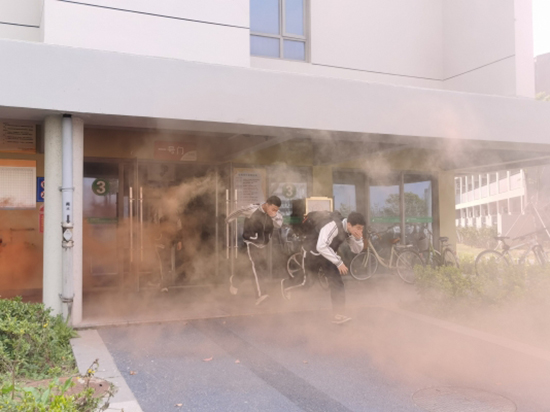 下午1時(shí)05分,宿舍區(qū)發(fā)生火情,消防警報(bào)響起,演練正式開(kāi)始。各樓老師迅速到達(dá)指定點(diǎn)位,火情越來(lái)越嚴(yán)重,濃煙滾滾,同學(xué)們手捂口鼻、低頭彎腰,奔向?qū)嬍议T(mén)口,按照預(yù)定疏散路線有序撤離出宿舍樓。在疏散過(guò)程中,大家安靜、快速、有序撤離,沒(méi)有出現(xiàn)擁擠、推搡、踩踏等意外情況。