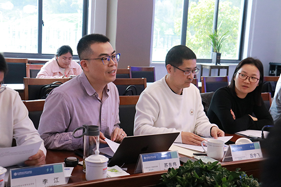 接著,校企雙方來到會議室進行座談交流。寧波市成人與教育學院教研員蘇東偉介紹了程序設計基礎(Python)教材建設情況。