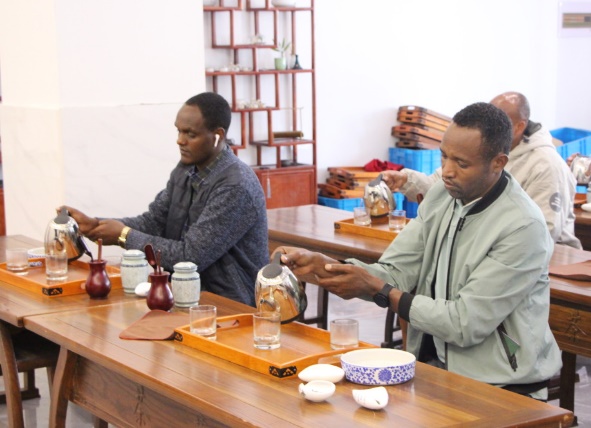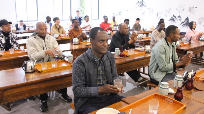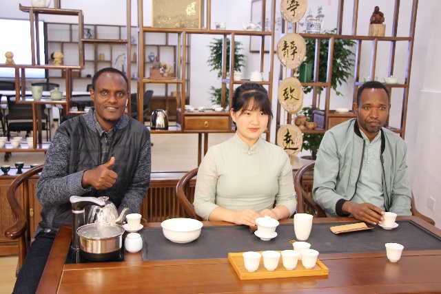 茶專業(yè)教師朱紅一為大家上了一堂開化龍頂茶沖泡體驗課。她詳細介紹了開化龍頂茶的歷史淵源、制作工藝以及品鑒方法,并親自演示了龍頂茶的沖泡過程。留學生們認真聆聽并現(xiàn)場學習、體驗了開化龍頂?shù)臎_泡技藝。”開化龍頂茶葉在杯中的造型很美麗,聞著特別清香。“聞著茶香,品著新鮮沖泡出的開化龍頂,留學生們贊不絕口。