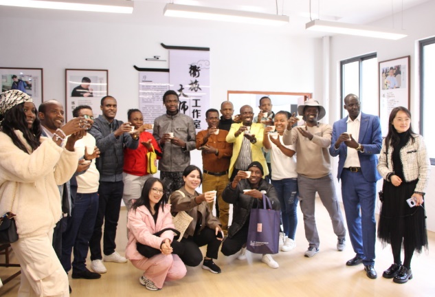在茶旅工場內,校茶藝隊的同學們?yōu)檫h道而來的客人奉上新鮮炒制的開化龍頂茶,茶香四溢,令人陶醉。“tasting special!”開化龍頂以其獨特的香氣和口感贏得了留學生們的喜愛。