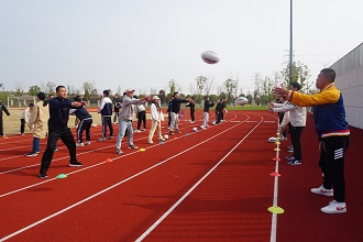 在午后互動環(huán)節(jié)中,老師們分成三組互相學(xué)習(xí),分別體驗了英式橄欖球、飛盤和地擲球運(yùn)動,感受了新興體育運(yùn)動項目的魅力。