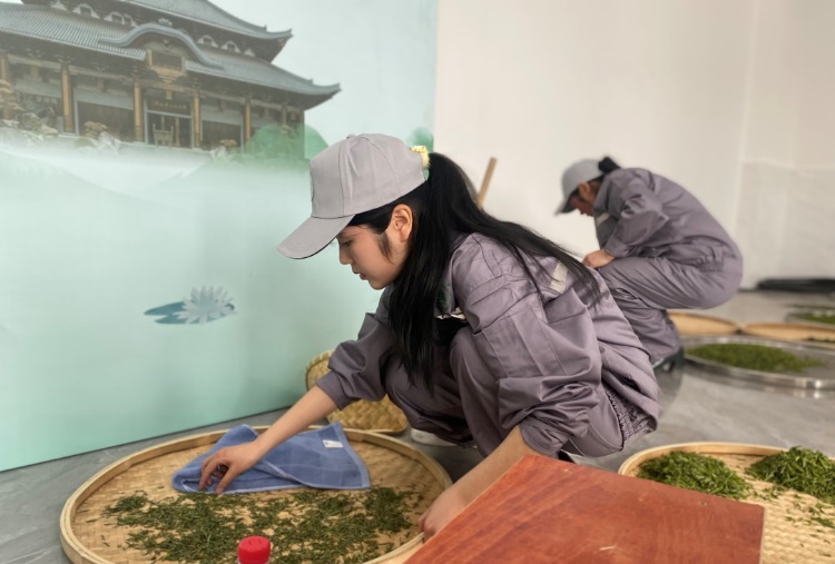 從校隊(duì)選拔、市賽突圍,再到省賽比拼、國賽完美亮相……在她的身上,有著茶人特有的專注與執(zhí)著。攤青、殺青、揉捻、干燥……手工制茶工藝復(fù)雜,步驟繁多,任何一個環(huán)節(jié)稍有差遲就會影響茶的品質(zhì),期間只有通過大量練習(xí)和對所制茶葉反復(fù)審評,才能不斷調(diào)整對火候和力道的把握。為更好控制鍋溫和感受茶葉的狀態(tài),制茶人全程不能戴手套。練習(xí)時,需克服對極高鍋溫的恐懼感。在日復(fù)一日的學(xué)習(xí)實(shí)踐中,她對制茶有了更深理解。“未來想打造自己的品牌,讓年輕人體驗(yàn)手工制茶、感受中國茶文化。”廖瑾杰表示。今年正好是高三實(shí)習(xí)期,待這個學(xué)期結(jié)束,她將升入大學(xué),繼續(xù)從事茶藝專業(yè)學(xué)習(xí)與實(shí)踐,今后仍繼續(xù)鉆研、傳承茶文化,為龍頂振興貢獻(xiàn)“茶二代”力量。