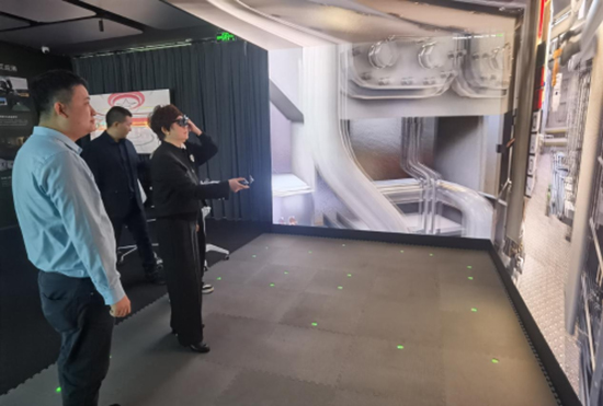 調研小組首先深入上海曼恒數字技術股份有限公司(華南總部)進行實地考察,全面了解虛擬仿真技術的最新發展態勢,為建設服務全校師生的“數字建筑虛擬仿真實訓基地”提供堅實的技術支撐和決策依據。在華南總部負責人譚永冰的帶領下,調研小組親身感受專業的MR頭盔、XR人機交互動作捕捉定位光學系統、XR數字化模擬訓練系統以及豐富的XR內容平臺等尖端設備與核心技術等虛擬仿真應用場景。經過深入的討論與交流,雙方就虛擬仿真技術與人工智能領域的應用以及其未來發展前景達成了共識,對學校開展相關技術的教學應用提供了切實可行的建議和思路.