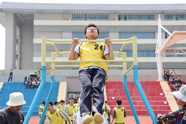 隨著開(kāi)幕式的結(jié)束,吉尼斯運(yùn)動(dòng)會(huì)正式拉開(kāi)了帷幕。本次運(yùn)動(dòng)會(huì)以“我們來(lái)挑戰(zhàn)”為主題,設(shè)置了班班有歌聲、懸浮照、仰臥起坐、超級(jí)人椅、單腳跳運(yùn)呼啦圈、鉆呼啦圈、珠行千里、旋風(fēng)陀螺、男子引體向上或女子排球墊球、快樂(lè)向前沖共10個(gè)富有趣味性和挑戰(zhàn)性的游戲項(xiàng)目?;顒?dòng)中,同學(xué)們熱情高漲,不少班主任也親自下場(chǎng),與同學(xué)們并肩作戰(zhàn),共同迎接挑戰(zhàn)。