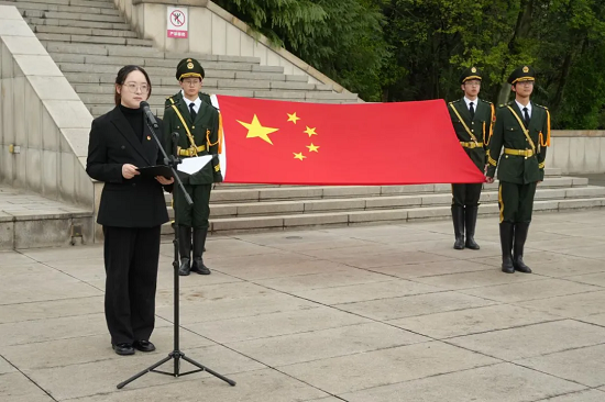 學生干部代表莫語悅同學在紀念碑前發言:“勿忘昨日苦難輝煌,無愧今日使命擔當,不負明日偉大夢想。”作為新時代青年,我們要繼承先烈遺志,學習先輩們不屈不撓,艱苦奮斗的革命精神,為民族振興,國家富強而努力奮斗。