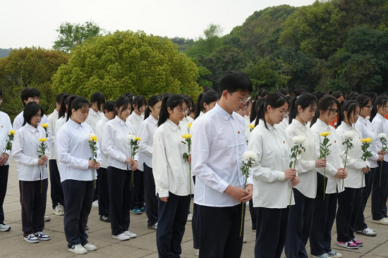 全體師生深刻默哀緬懷革命烈士豐功偉績;敬獻鮮花,寄托對先烈的哀思。繞紀念碑一周,瞻仰烈士風采。