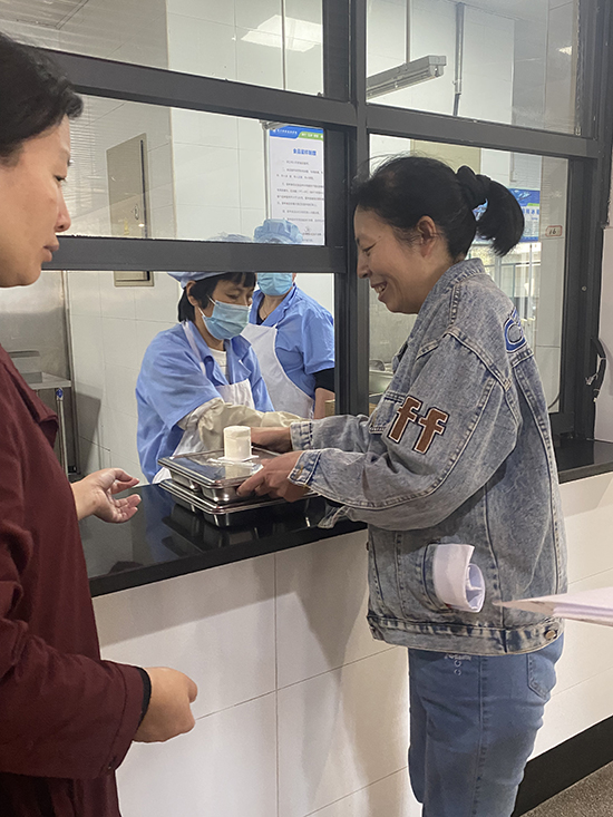 中午,家長們走進食堂,參觀后廚操作間,與同學們一起共進午餐,切身感受孩子們的就餐情況。營養美味的飯菜讓家長們既滿意又放心。