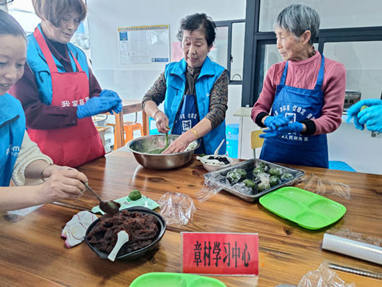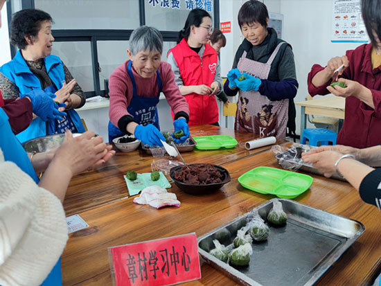 為了充分發揮中華民族傳統節日文化和新時代文明傳播功能,4月2日,安吉縣社區教育學院章村學習中心在章村村文化禮堂老年餐廳開展了手工制作青團活動,共計45位居民參加。