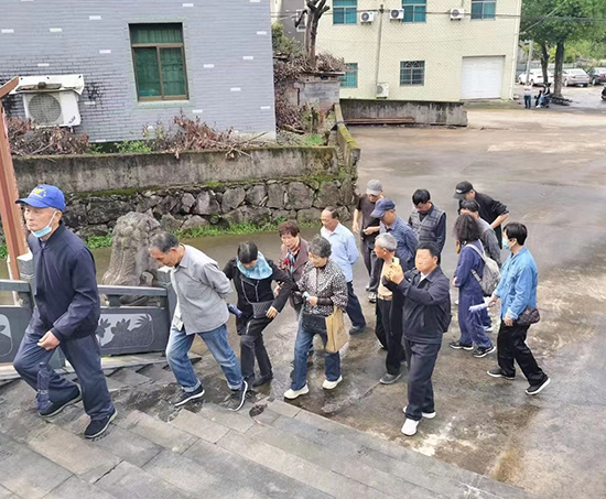 一行人來到陵園祭掃烈士墓。楓橋鎮退教分會主任胡國勝在陵園前作《天地英雄氣 千秋尚凜然》的講話。著重介紹了洄村十九英烈之一周達(1913-1947)的革命事跡。胡國勝指出:“今天,我們來這里祭奠革命先烈,是為了追尋英雄足跡,繼承先烈遺志,弘揚民族精神,激發愛國情懷,增強責任感和使命感;目的就是要通過祭掃烈士墓活動喚起后人對革命先烈的追思和敬慕,體驗感恩之心,講好紅色故事,汲取先輩的精神力量,為中華民族的振興而奮斗!”