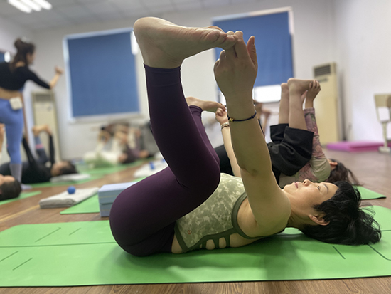近日,在嘉興市桐鄉市崇福社區學校的瑜伽課上,52歲的班長趙同學和她的姐妹們,正在老師的指令下,完成著各種動作。依托社區教育,越來越多和趙同學一樣的老年人,退休后走進學堂,結識志趣相投的朋友,體會一路追夢圓夢的喜悅,生活增色了不少。