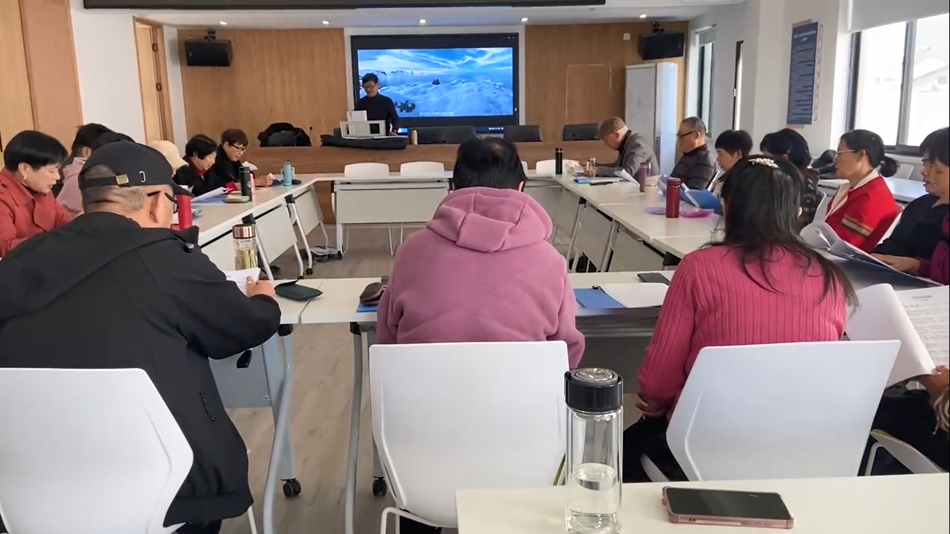4月9日下午,昌碩分院下屬廣場社區老年學堂里歌聲悠揚,每周二下午的老年聲樂班在此上課。班級里20余名老年學員熱情高漲,早早到達課堂,等待老師的到來。