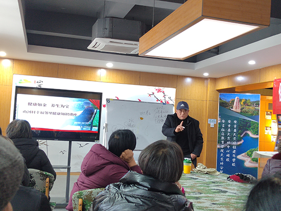 系列培訓活動邀請了安吉老年大學健康管理師章會安授課。培訓內容有:追溯健康根源,探尋健康之道;剖析疾病本質,了解藥物與營養;心血管疾病的發病機制及如何預防?糖尿病的發病機制及如何預防?章會安醫師針對大家對心腦血管疾病、骨質疏松、糖尿病等疾患認識不足、治療盲目、自我保健意識不強等問題,由淺入深,生動形象地為大家進行詳細講解。同時,還從如何注意飲食、作息等方面講述了熱性、中性和寒性食物等對人體健康的作用,并對一些錯誤習慣進行了提醒和糾正。其精彩而富有感染的授課贏得在場老年朋友的一致好評。