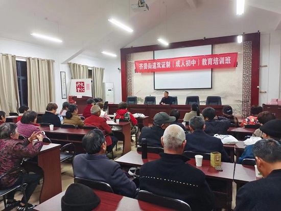開班儀式由齊賢成校副校長王紅江主持,他先向大家介紹了“雙證制”(初中)教育培訓(xùn)課程及培訓(xùn)形式,培訓(xùn)開設(shè)了《語文》《數(shù)學(xué)》《公民道德與法律》《社會科學(xué)》四門必修課程,同時輔以技能培訓(xùn),比如智能手機培訓(xùn)等。學(xué)員以線下授課形式參加培訓(xùn)學(xué)習(xí),完成學(xué)業(yè)、通過考試后將獲得成人初中畢業(yè)證書。
