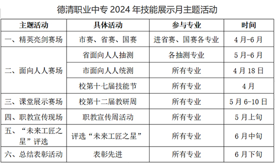 為全力培育“精以成技,誠以修身,勤以立業”的德職人,助推專業高水平發展,提升學校核心競爭力,4月10日,德清職業中專舉行2024年技能展示月啟動儀式。