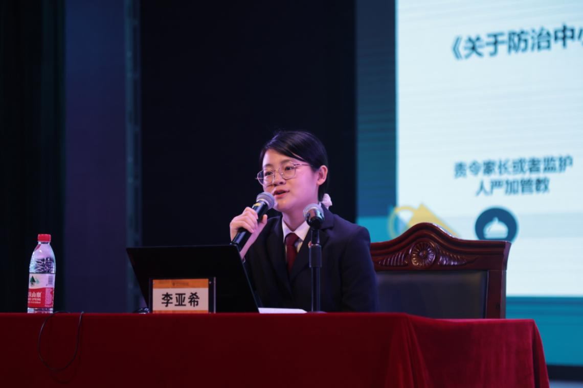 李檢查官結合具體案例,就校園欺凌行為的種類、法律責任與防治措施以及“幫信罪”、“詐騙罪”等三類犯罪行為的預防進行了詳細的解讀。李檢查官還勉勵同學們要增強法治意識,保持樂觀心態,提升鈍感力,涵養大胸懷。