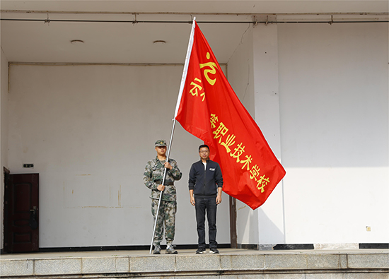 校黨總支書記、校長陳偉華為本次拉練授旗。