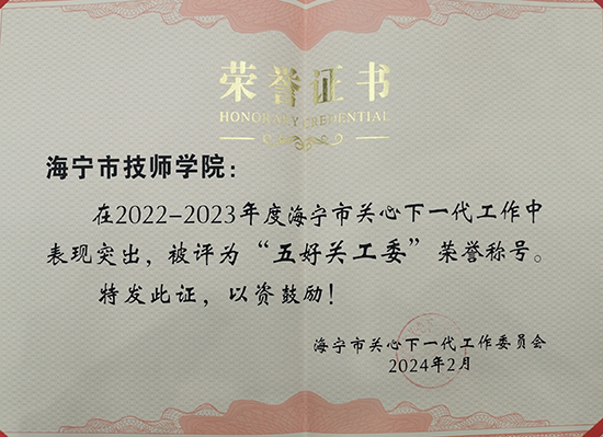 4月12日,全市關心下一代工作會議在行政中心舉行。嘉興市人大常委會原副主任、市關工委主任陳越強,市委副書記、政法委書記呂忠飛出席會議并講話。海寧技師學院在2022—2023年度海寧市關心下一代工作中表現突出,榮獲“五好關工委”榮譽稱號,充分展現了學院在關心下一代工作中的積極態度和顯著成果。