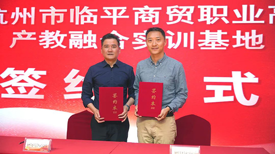 隨后,沈琪與阿里巴巴(中國)教育科技有限公司淘寶教育校企業(yè)務(wù)總監(jiān)張雷代表雙方簽署協(xié)同育人協(xié)議,邵曉舟為對方授牌“產(chǎn)教融合建設(shè)基地”。