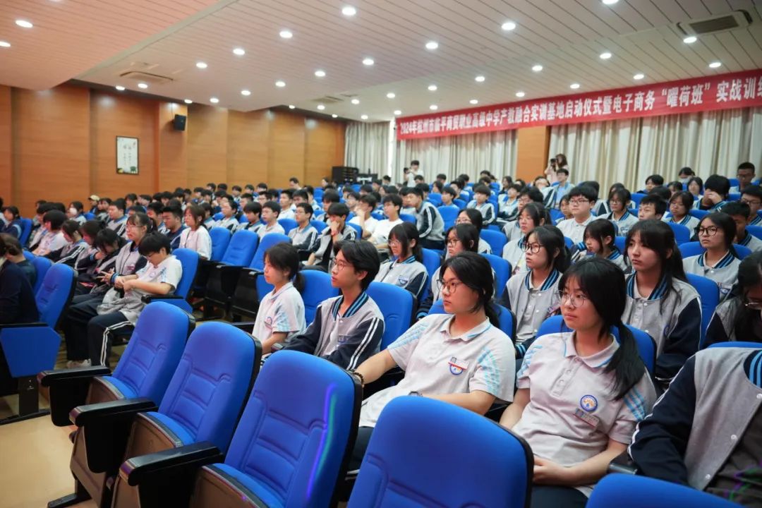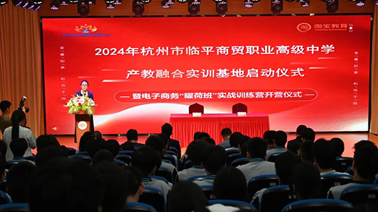 為加快推進(jìn)現(xiàn)代職業(yè)教育體系建設(shè),深化學(xué)校產(chǎn)教融合,促進(jìn)教育鏈、人才鏈與產(chǎn)業(yè)鏈、創(chuàng)新鏈有效銜接,4月16日上午,杭州市臨平商貿(mào)職業(yè)高級中學(xué)隆重舉行產(chǎn)教融合實(shí)訓(xùn)基地啟動儀式暨電子商務(wù)“曜荷班”實(shí)戰(zhàn)訓(xùn)練營開營儀式。