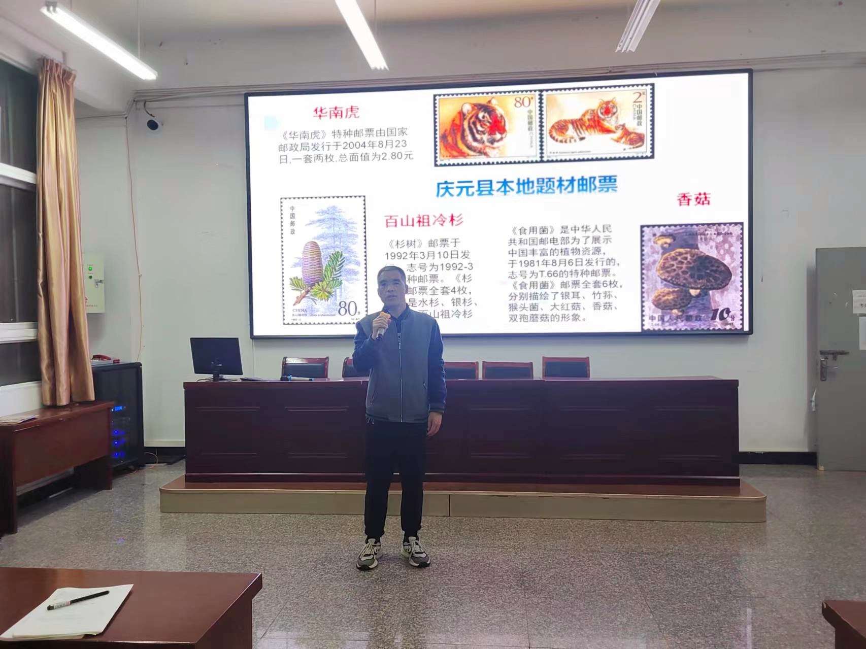 為配合學(xué)校正在開展的中華人民共和國成立75周年“我和我的祖國——我與新中國郵票”主題征文活動(dòng),進(jìn)一步開拓學(xué)生視野,提高學(xué)生的集郵興趣,培養(yǎng)學(xué)生高雅的情操, 4月15日,慶元縣職業(yè)高級(jí)中學(xué)集郵協(xié)會(huì)在階梯教室舉辦了一場(chǎng)題為“怎樣寫好集郵征文”的集郵知識(shí)講座,來自全校各班的語文課代表和全體集郵協(xié)會(huì)成員聆聽講座。