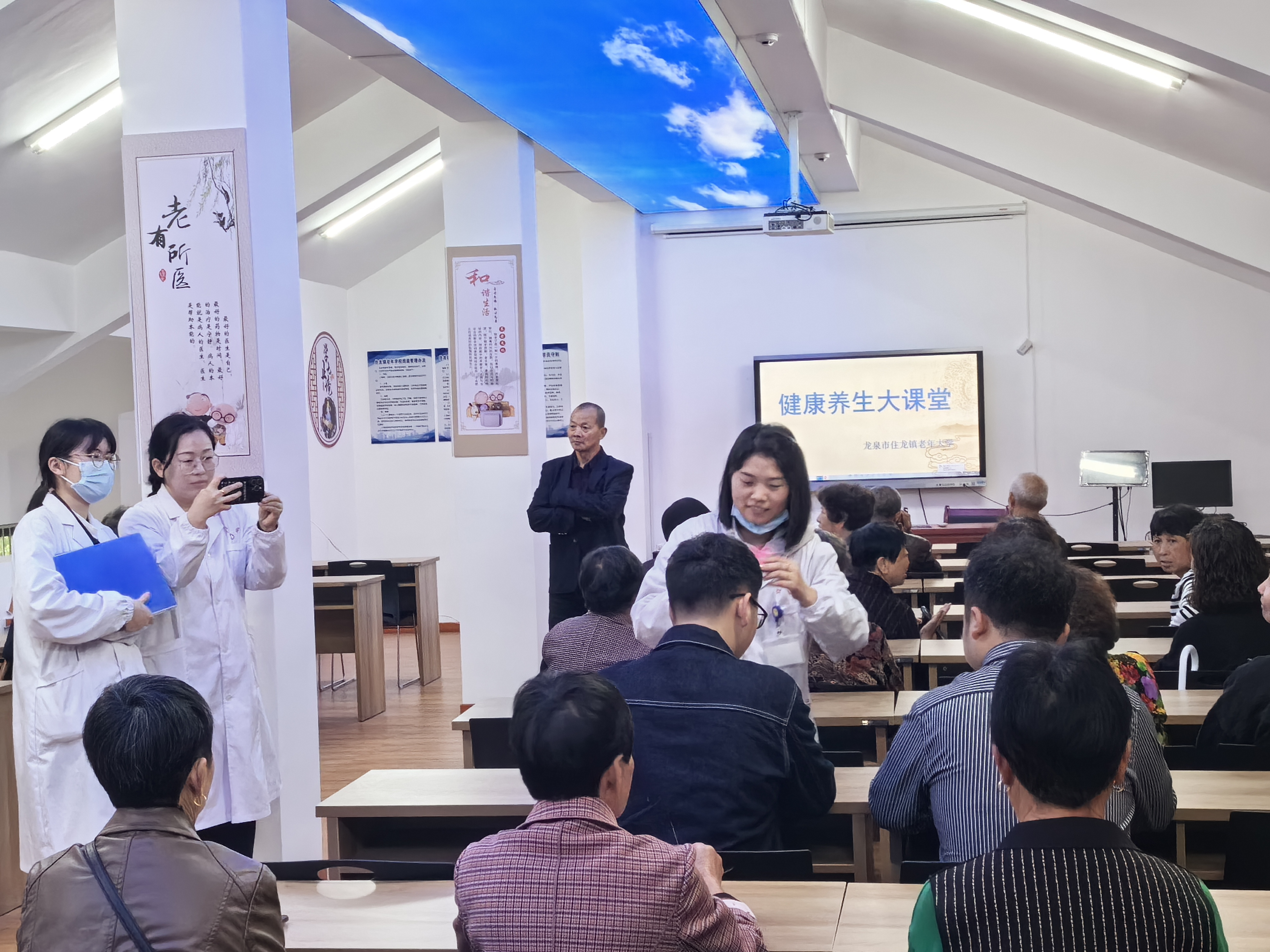 為了提高老年人健康水平,豐富老年人的生活知識,指導老年人科學健身養生,錦溪區域成人技術學校聯合鎮衛生院,在住龍鎮老年學校為老人定期開展養生課堂。