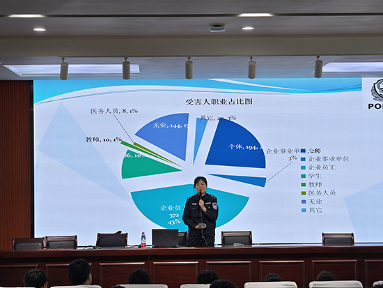 宣講會上,德清縣反詐中心金牌宣講員李小瓏警官通過PPT展示,詳細介紹了網絡詐騙種類、易受騙群體以及作案手法等內容。通過典型案例分享,重點為同學們講解了刷單返利詐騙、網絡交易詐騙、冒充熟人詐騙、網絡游戲虛假交易詐騙、殺豬盤詐騙等騙術騙局;還通過播放反詐宣傳視頻及現場問答與同學們面對面互動交流,提醒同學們在日常生活中注意保護個人身份信息,要及時下載安裝國家反詐中心APP,牢記國家反詐專線96110和湖州市防詐熱線2250000,若被騙及時撥打110報警。
