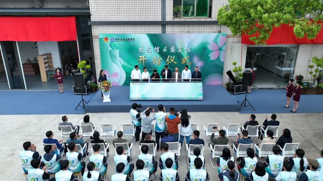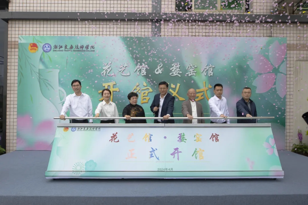 4月18日上午,浙江交通技師學院星行·花藝館&婺窯館開館儀式在主席臺后方順利舉行。國家工藝美術大師、婺窯非遺傳承人陳新華,花藝大師何小紅,金東區人社局副局長趙萃,金華市教育局校園安全與體衛藝處處長肖金澎,以及校黨委書記、校長李忠躍,黨委委員、副校長應建明,黨委委員、副校長葉智勇、相關部門負責人應邀出席活動。
