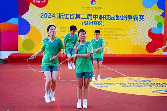 本次比賽吸引了來自湖州地區(qū)的多所中職學(xué)校參與,競爭非常激烈。本次比賽共有30秒單搖(男、女)、1分鐘并腳跳(男、女)、1分鐘1帶1(男、女)、3分鐘10人“8”字跳(混合)、8人集體花樣自編表演(混合)五個(gè)項(xiàng)目。德清職業(yè)中專學(xué)生分別以男子30秒單搖第一名,女子30秒單搖第三名,男子、女子1分鐘并腳跳均第一名,女子1分鐘1帶1第一名,男子1分鐘1帶1第六名,3分鐘10人“8”字跳(混合)第二名,8人集體花樣自編表演(混合)第三名的成績獲總分第二名,晉級省賽。