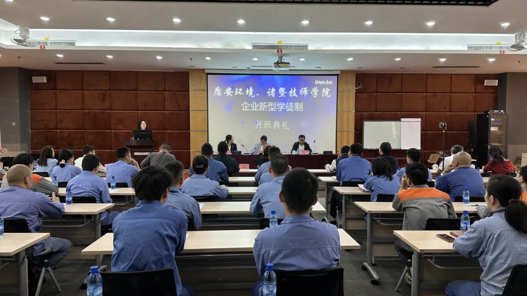 楊丹堃則從社會發展背景和盾安環境發展足跡切入,提出持之以恒地推動人才隊伍的建設的重要性。并借開班儀式向盾安環境提出了三點希望:希望盾安環境能繼續發揮示范企業的帶頭和引領作用;二是創新企業新型學徒制人才培養模式,發揮企業的主導作用,探索人才培養的新模式和新方法,為全市企業新型學徒制的培訓提供更多先進經驗和典型做法;三是基于崗位價值,真正把職工增技、企業增效、職工增收三者緊密銜接,暢通技能人才職業發展的通道,為諸暨增技增收的先行企業打造樣板。最后楊副局長還表態,人社局將以更加優質高效的服務真心實意的幫助企業解決新型學徒制開班過程中遇到的各種問題,同時做好各種服務保障,真正以政府的“有為”打造“政府重視技能,社會崇尚技能,人人學習技能,人人擁有技能”的技能型良好社會生態。