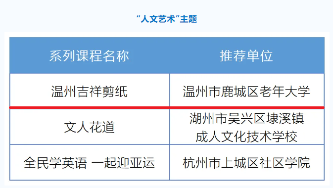 近日,教育部印發《關于推介2023年縣域社區學習中心典型案例和社區教育品牌課程的通知》,溫州市鹿城區老年大學的《溫州吉祥剪紙》入選“人文藝術”主題類社區教育品牌課程推介名單。
