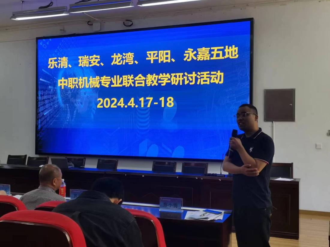 2024年4月17-18日,樂清、瑞安、龍灣、平陽、永嘉五地中職機械專業聯合教學研討活動,暨樂清市陳爾彪名校長工作室、溫州市鄭小勇名師工作室、樂清市江德緒技能大師工作室聯合活動,在樂清市柳市職業技術學校舉行。樂清市教育研究培訓院教研員金征宇、瑞安市教育發展研究院教研員黃宗放、龍灣區職教研訓科教研員何衛標,以及五地中職機械專業骨干教師、工作室成員30多位教師參加活動。