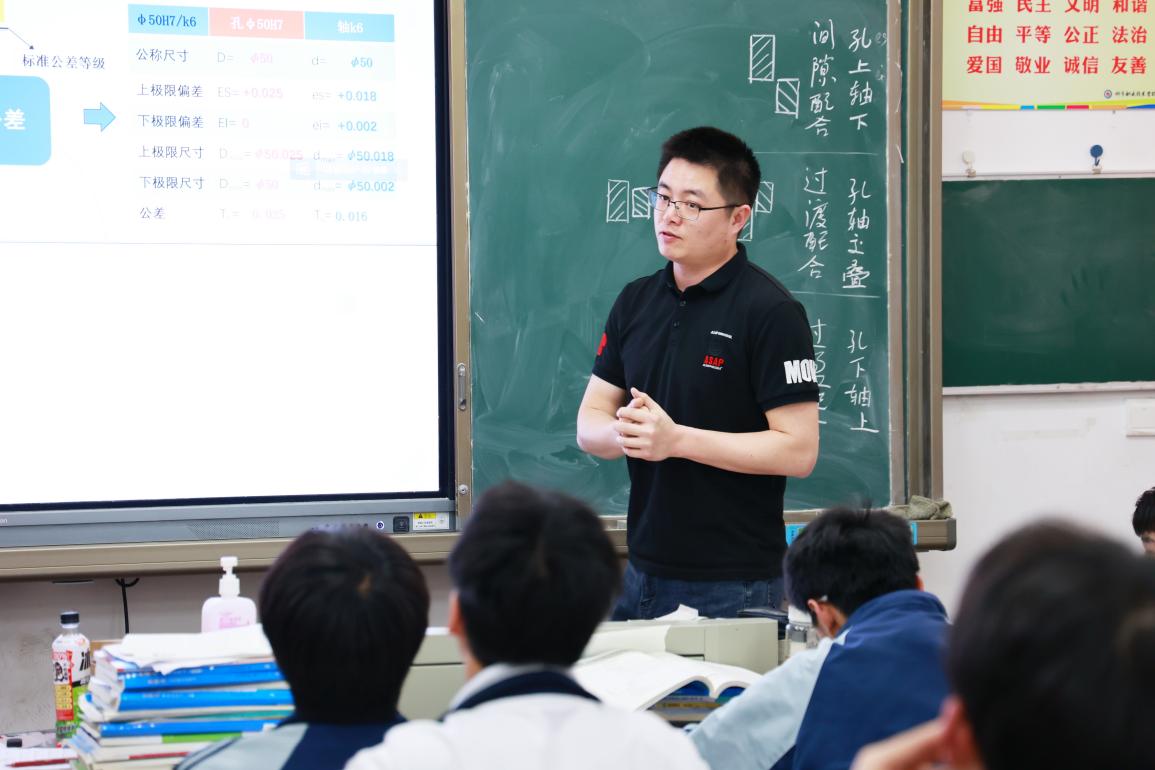 瑞安市塘下職業中等專業學校丁林捷老師帶來《極限偏差與配合》復習課,丁老師采用課前、課中、課后三段式教學,課前下發練習,幫助學生梳理知識點,厘清重點內容;課中通過課前練習分析落實基礎概念,學生挑戰高職考真題,師生、生生互動分享真題解題要領,重點落實畫公差帶圖解題,達成教學目標。