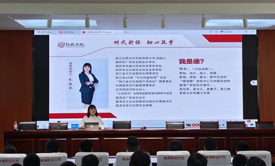 本次活動邀請的是23烹飪2班學(xué)生錢奕航的家長朱國琴女士——浙江紅圖文化科技有限公司總經(jīng)理、湖州市廣告協(xié)會副會長。會議由烹飪旅游系辦周建良老師主持,23級200多名學(xué)生和班主任參加了此次講座。周老師介紹了舉辦家長導(dǎo)師進(jìn)校園的意義,讓學(xué)生近距離聆聽家長導(dǎo)師的成長經(jīng)歷,將所學(xué)所得轉(zhuǎn)化為成長的動力,隨后,向朱經(jīng)理頒發(fā)了學(xué)校的聘書。