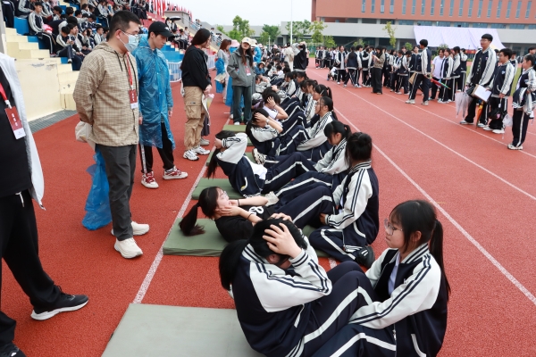 開幕式結(jié)束后,集體項(xiàng)目比賽隨即展開。男生引體向上賽場(chǎng)上,選手們斗志昂揚(yáng),紛紛躍上單杠,展示力量與技巧,流暢的動(dòng)作與不懈的堅(jiān)持,贏得觀眾陣陣喝彩。同時(shí),女生仰臥起坐比賽也在緊張進(jìn)行,她們躺在墊子上,一次次起身、躺下,動(dòng)作標(biāo)準(zhǔn)而有力,展現(xiàn)出了女生們堅(jiān)韌不拔的毅力和優(yōu)雅的美感。
