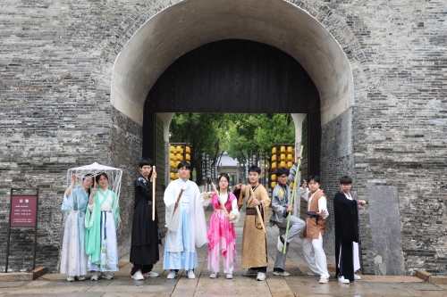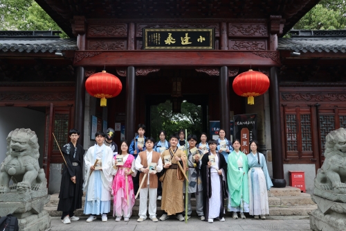 學校漢服社社員、部分武俠小說愛好者前往子城、醉仙樓、煙雨樓和小蓬萊等金庸小說中代表性地點打卡,身穿金庸武俠小說中標志性人物的衣飾,沉浸式體驗金庸先生筆下的武俠世界。