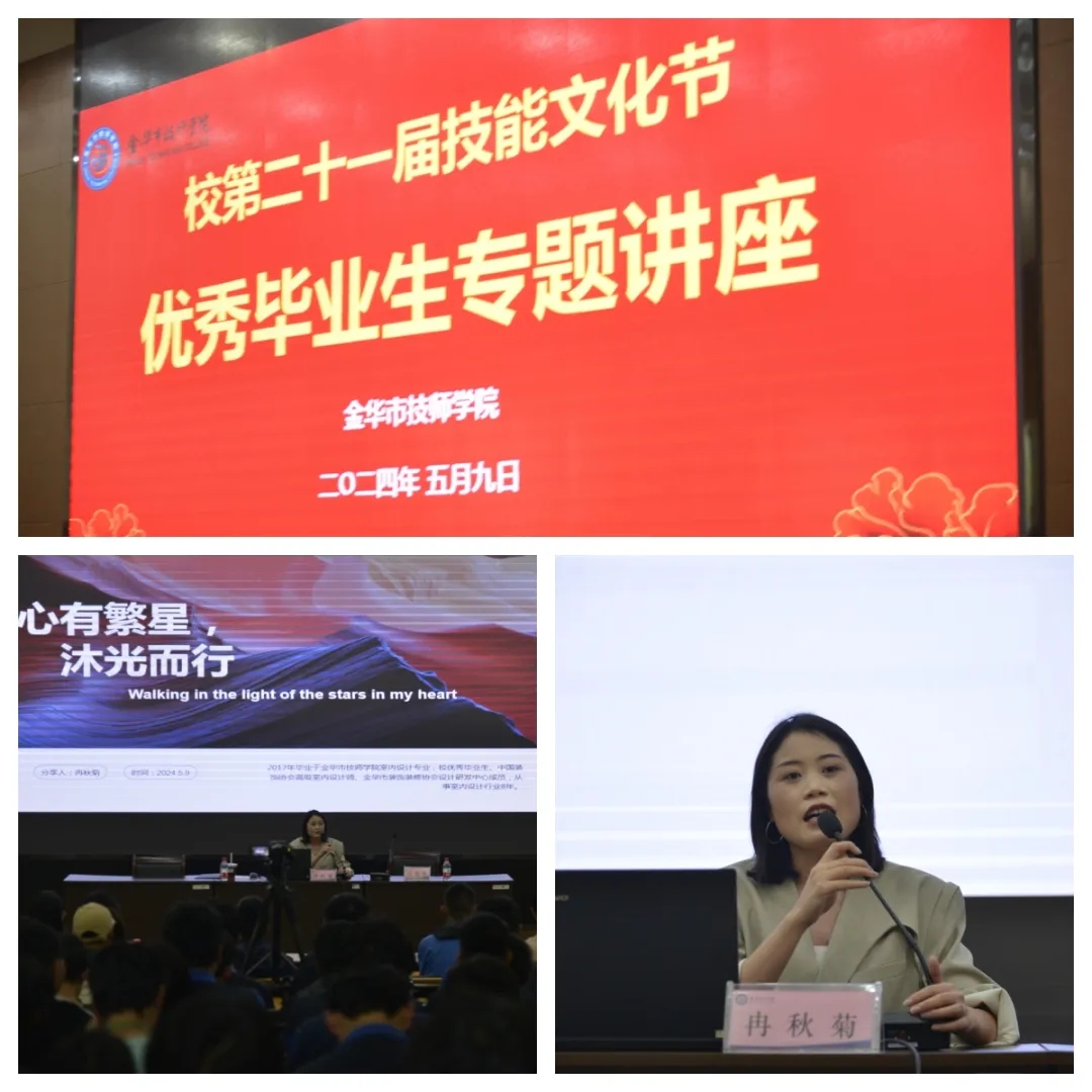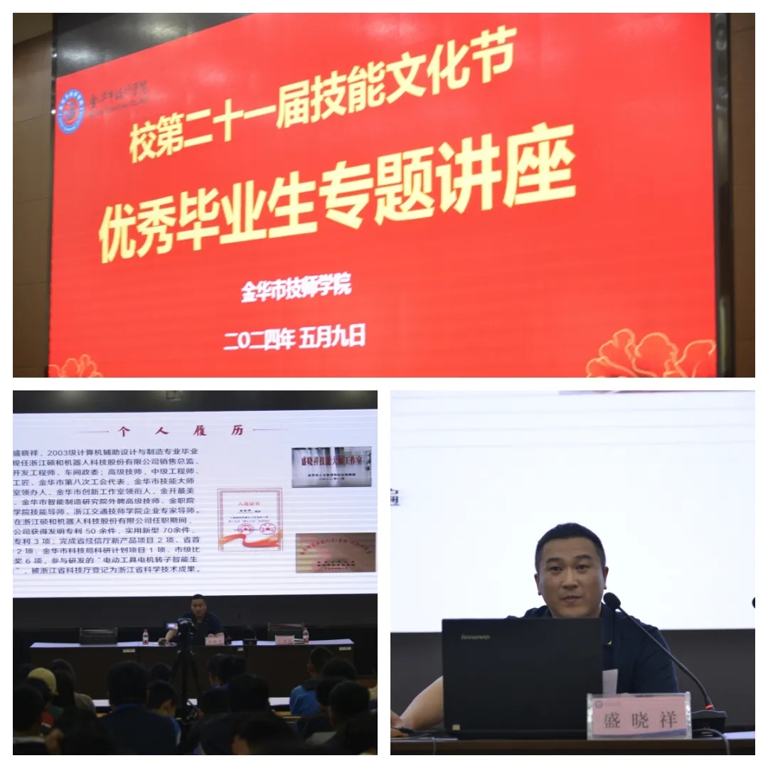 中國裝飾協(xié)會高級室內(nèi)設(shè)計師、金華市裝飾裝修協(xié)會設(shè)計研發(fā)中心成員,學(xué)校2017屆室內(nèi)設(shè)計專業(yè)畢業(yè)生冉秋菊與浙江碩和機(jī)器人科技股份有限公司銷售總監(jiān)、前端開發(fā)工程師、車間政委,學(xué)校2009屆計算機(jī)輔助設(shè)計與制造專業(yè)畢業(yè)生盛曉祥。兩位優(yōu)秀畢業(yè)生回校為學(xué)弟學(xué)妹們開設(shè)講座。他們分享了自己的在校就讀經(jīng)歷、職業(yè)成長生涯、技能奮進(jìn)路上的感悟,真摯的話語,精彩的講座,令學(xué)子們沉浸其中,收益良多。