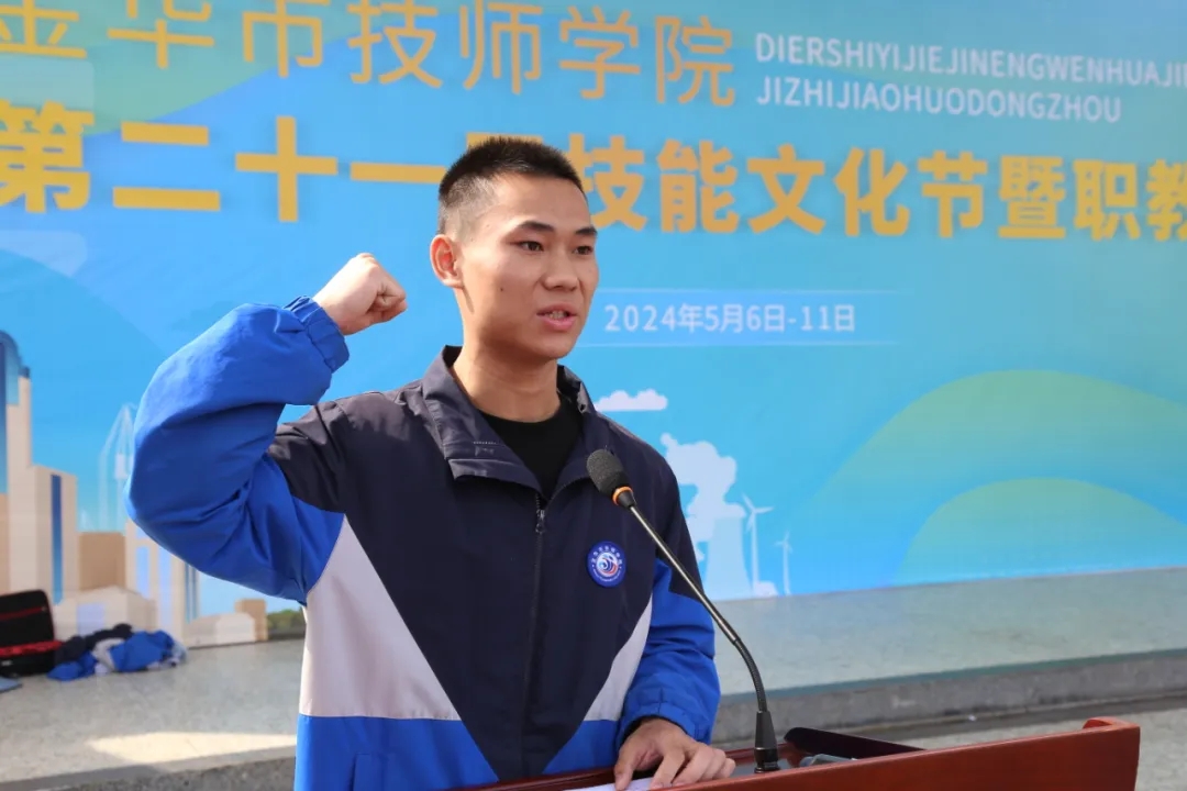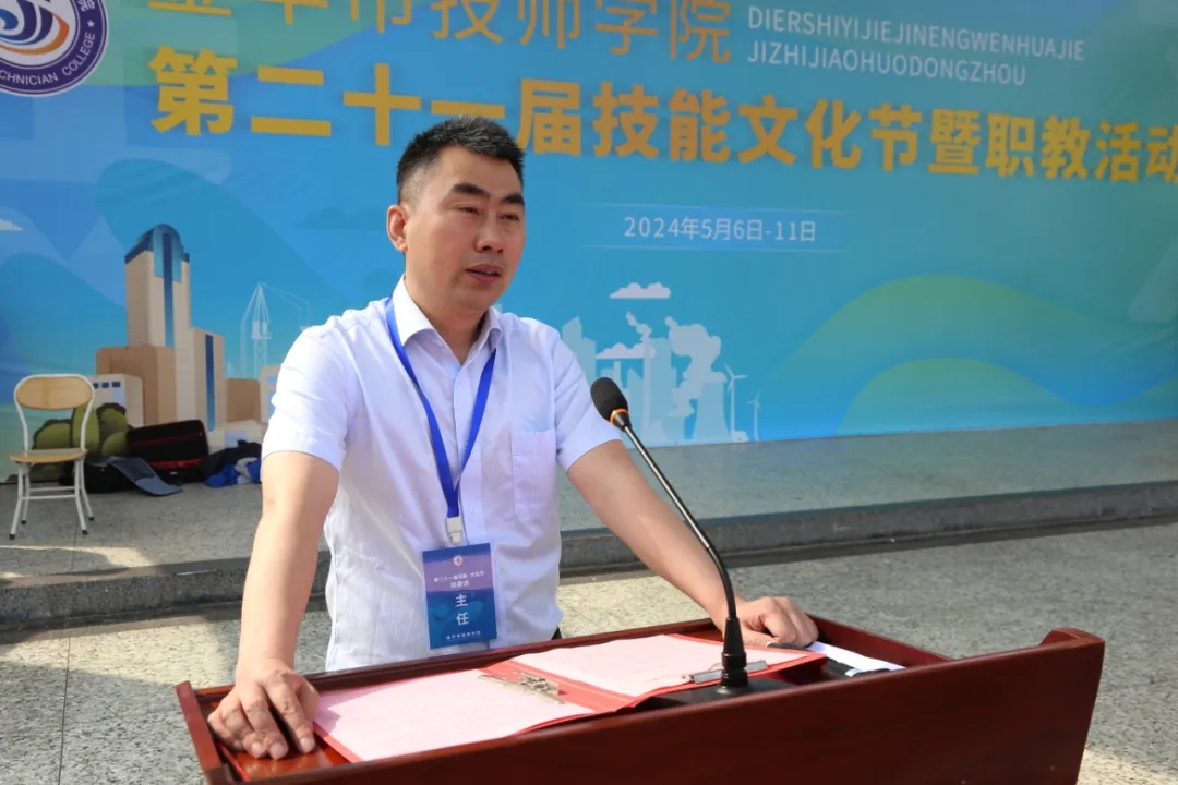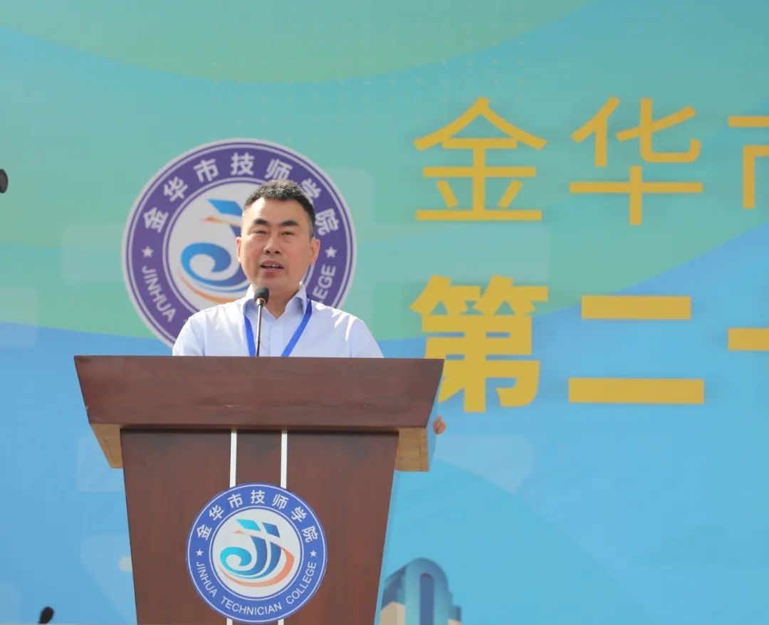 金華市技師學(xué)院黨委書記、校長、活動組委會主任劉云斌致開幕詞。劉云斌校長表示,全國兩會期間,習(xí)近平總書記強(qiáng)調(diào),要實(shí)實(shí)在在地把職業(yè)教育搞好,要樹立工匠精神,把第一線的大國工匠一批一批培養(yǎng)出來。浙江省新春第一會上要求:加強(qiáng)“三支隊伍建設(shè)”,全力打造“高素養(yǎng)勞動者隊伍”是浙江建設(shè)之路的基礎(chǔ)支撐。“立德樹人”是國家大力發(fā)展技工教育的根本任務(wù),“德技并修”更是培育大國工匠、能工巧匠的內(nèi)在要求。我校作為市本級唯一一所技師學(xué)院,堅定貫徹國家政府政策方針,聚焦人才培養(yǎng),爭創(chuàng)一流。他簡要總結(jié)了學(xué)校這一年顯著的成果,并期待全體師生都能積極參賽,百舸爭流奮勇爭先;共享盛會,沉浸競技比賽與文化藝術(shù)的熱烈氛圍。砥礪前行,以技能文化節(jié)為契機(jī),把握新機(jī)遇,匯聚新能量,奮戰(zhàn)新征程,走出屬于金技的特色之路。