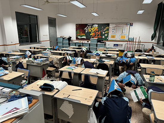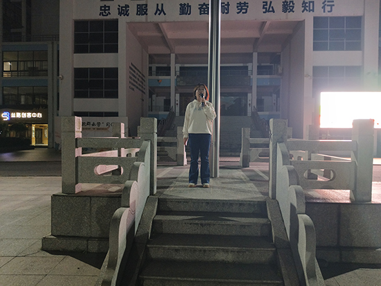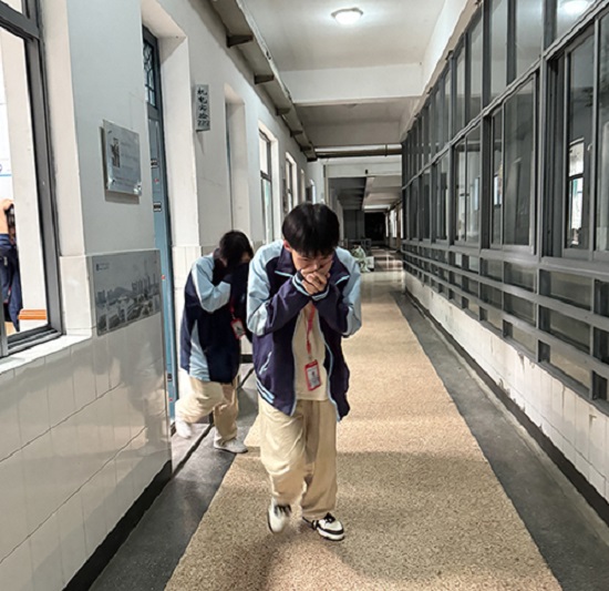 晚上8時45分,隨著警報聲響起,疏散演練正式開始。晚自習值班老師迅速組織學(xué)生有序離開教室,并在本樓層彎道處做好疏散指揮。各班學(xué)生按指定逃生路線安全、有序、快速地離開教學(xué)樓,安全到達駱駝廣場。隨后各班迅速清點人數(shù),并層層上報。