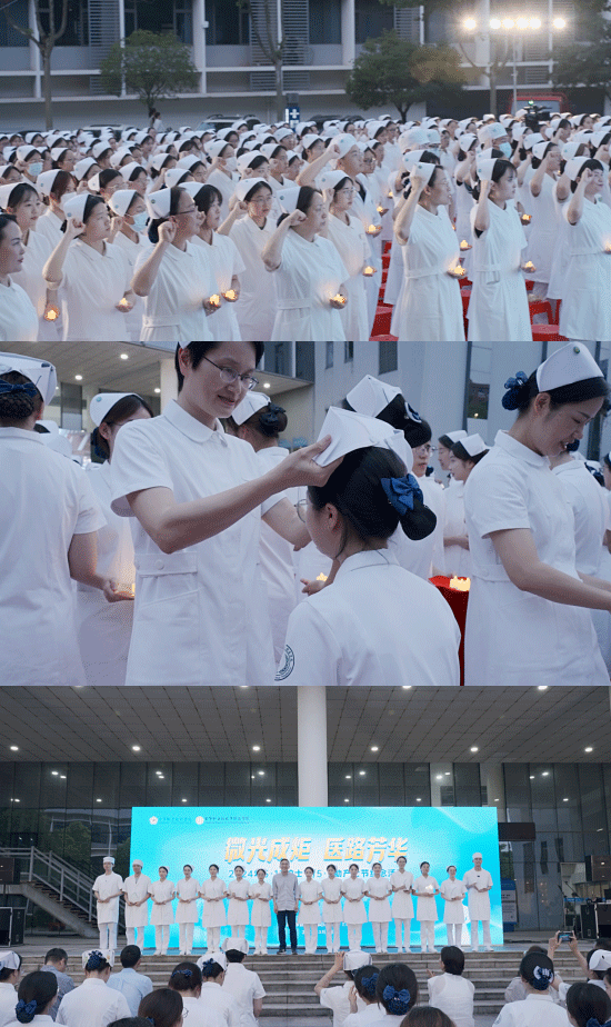 “我宣誓,接過前輩手中的蠟燭,燃燒自己,照亮他人,把畢生精力奉獻給護理事業。”隨后,全體醫護學子手持蠟燭、莊嚴宣誓,并由護理前輩們為大家戴上圣潔的燕尾帽和精致的徽章。在鏗鏘有力的誓言中,飽含了同學們獻身護理事業的堅定決心和以真心、愛心、責任心對待每一位病人,永葆白衣天使的圣潔的濃濃真情。這一刻,大家感受到了醫學的莊嚴和神圣,更加堅定了自己從事醫護工作的決心和信念。