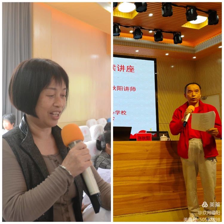 培訓(xùn)其間,加入互動形式。黃惠祥副會長、謝美琴老師上臺朗讀演示,張秋陽作現(xiàn)場點評。聲情并茂的朗讀,受到了大家掌聲鼓勵。就是在課間空隙,銀齡教師也三五同事好友、抓緊時間相互交流、切磋、練習(xí)……